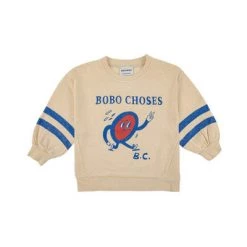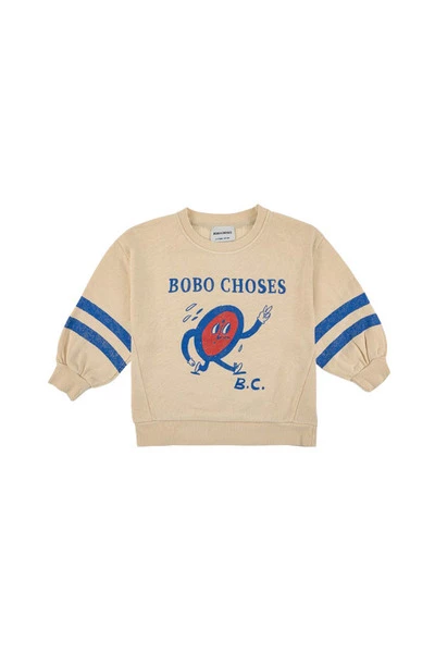 Beige sweatshirt met ronde hals. Ontworpen met lange mouwen, schouderknoopsluiting, geribde manchetten, geribde onderkant, ronde hals en binnenborstelfleece. Het heeft een losse pasvorm. Gemaakt in Portugal.