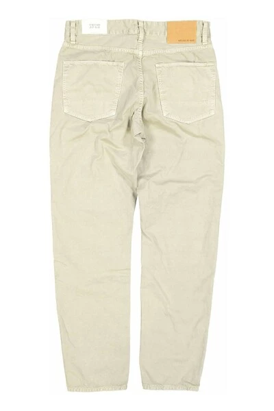 Butcher of Blue Stockton Loose Tapered jeans beige Product Omschrijving Deze Stockton Loose Tapered jeans van het Nederlandse label Butcher of Blue is nu bij ons verkrijgbaar. De Stockton Loose heeft de perfecte moderne pasvorm. Wat ruimer om de heup, een klein beetje ruimte op de bovenbeen en een smallere onderkant zonder dat je bloedtoevoer naar je voeten stopt. De broek mag dan ook wat losser gedragen worden. De details komen van een klassieke “5-pocket” jeans en rivets en knopen zijn van een unieke matte staal soort gemaakt. De branding komt mooi terug voorop de broek met een “handstitched” Haak op de coin pocket, deze wordt subtiel herhaald op de achterzak waar deze terugkomt in de onderbroken “pocketbag” stiksel. Product Samenstelling Materiaal: Katoen