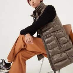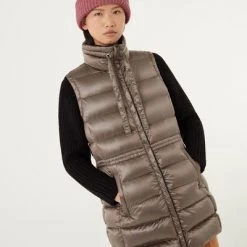 Vrouwen ; s mouwloze jas gemaakt van iriserende gerecyclede stof met waterafstotende behandeling. Opgevuld met zachte natuurlijke down. Modieus en verfijnd, het lange slanke vest heeft regelmatige quilts en trekkoord in de taille en nek. Draag het gekruld om het silhouet te benadrukken of rechtstreeks voor een sportievere uitstraling. De comfortabele en praktische zijzakken maken het een veelzijdig kledingstuk dat geschikt is voor het herfstseizoen. Zakken zakken zakken met ritssluiting met ritssluiting in de nek en in de taille natuurlijke veervulling waterafstotende behandeling colmar originelen logo linksonder toegepast