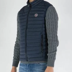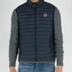 100 gram voor heren met gewatteerde vulling, hoge kraag en centrale volledige ritssluiting. Laterale zakken en interne pocket met zip- en merklogo toegepast op de borst. Merk: Colmar Artikelcode: 1278P Samenstelling: 100% polyamidevulling: 100% veer. Pass: het model is 185 cm hoog en draagt een maat 48.