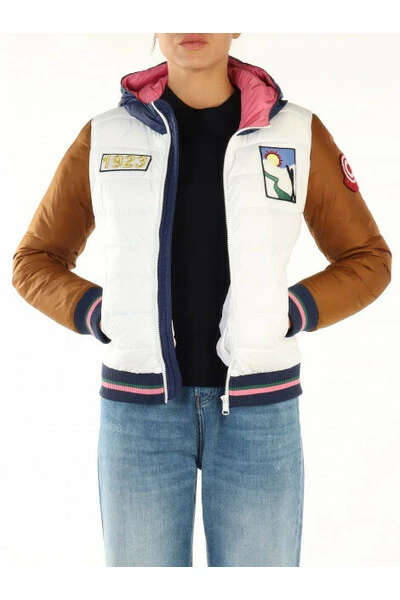 Hoge codeing kraag niet verwijderbare lange mouwen met elastische polsen met ritssluiting en tirazip -logo voorzakken met zip patch -logo contrasterende inserts polsen en ruggengraat achtergrond: polyester modelhoogte (cm): 175 veren grootte: 40 Samenstelling: 100%polyamide: 100%polyamide: 100%polyamide: 100%polyamide: 100%polyamide: 100%polyamide