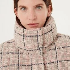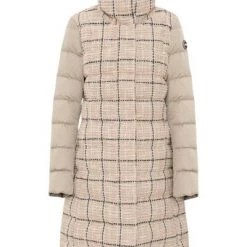 Middenlengte vrouwen ; s jas met natuurlijke omlaag en gemaakt van zacht bouclé-garen met behandeling met waterafstotende behandeling. Het contrast gecreëerd door de achterkant van het gekreukelde nylon-kledingstuk met de voorkant in Bouclé-garen harmoniseert perfect met de eenvoudige sneden van dit high-neck jasmodel. De off-center sluiting met zip- en persstuds voorkomt dat de kou binnenkomt en geeft een vleugje klasse aan dit zeer vrouwelijke kledingstuk. Fantal en chic look uit om de kou te onder ogen zien met Colmar Originals Style.ZIP en Snap -knopsluiting