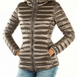 Gevoerde nylon stof en gewatteerde kraag met hoge capuchon Niet verwijderbare lange mouwen met elastische polsen met tweewegende zip sluiting voorzakken met zip -patch -logo op het logo van de mouwpatch op de achtervormige modelvulling: echte veermodelhoogte van het model (cm): 175 veren grootte: 40 Samenstelling: 100%polyamide