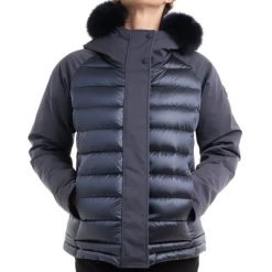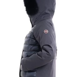 De jas van vrouwen met een vaste kap en verwijderbare vacht, drielaagse stretchstof en opgevuld met natuurlijke down. Sporty look onderstreept door de belangrijke flap die de dubbele zip- en knoopafsluiting omvat. Een origineel, praktisch en functioneel model, waarbij de glans van de iriserende stof wordt gecombineerd met de technische stof van de mouwen. Sluiting met zip -zakken van de zip en automatische knop met zip vaste kap Natuurlijke down vulling stof ondoordringbaarheid: 10.000 mm waterkolom Water afstotende behandeling colmar originelen logo aangebracht op de linkerkleef