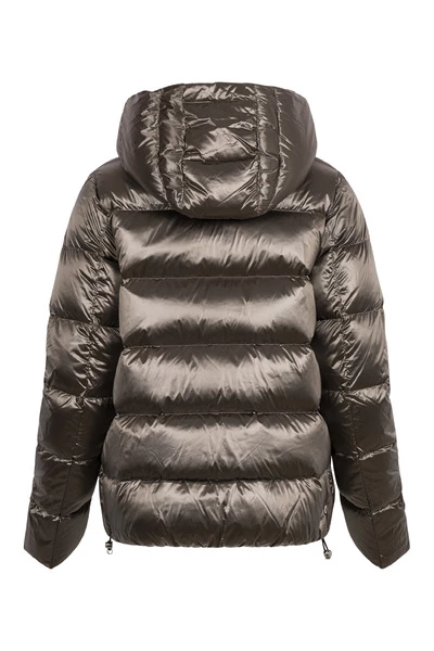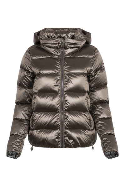 Donsjack met maxikraag van Colmar. Deze moel is voorzien van afneembare capuchon, voering in contrasterende kleur, het iriserende effect van de stof en de zwakke, geslingerde vorm geeft een trendy en vrouwelijke uitstraling, hoge kraag, zijzakken met rits afneembare capuchon elastische banden aan de manchetten en onderkant contrast.