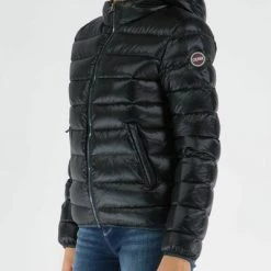 Korte down jas voor vrouwen met vaste kap en verhoogde nek gemaakt met natuurlijke veervulling en geweven met wateroplossende behandeling. Volledige zip -sluiting, comfortabele zakken met intrekbare rits en Colmar -logo genaaid op de linker mouw. Merk: Colmar Artikelcode: 2286N Samenstelling: Exterieur: 100% polyamidisch. Lijn: 100% polyamidisch. Vulling: 90% down d Duck, 10% Piuma D Eend. Pass: het model is 177 cm hoog en draagt maat 42 in de paarse kleur.