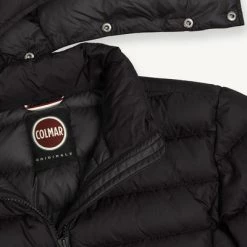 Colmar Originals Coats Zwart – Zwarte kleur – Verwijderbare kap – Zipafsluiting vooraan – Logo -toepassing op de linker mouw – 2 zijzakken en 1 binnen met ritssluiting – elastische tape aan de onderkant en bij de polsen – waterafstotende behandeling – Natuurlijke veervulling: 100% Duck Down – Samenstelling: 100% polyamide