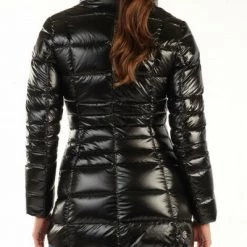 Gevoerde nylon stof en maxi nek lange mouw met tweewegen ritssluiting en tirazip -logo sluiting met passagiersdrukknoppen met voorzakken met zip patch -logo op het mouwmodelvormige vulling: echte veer veerhoogte van het model (cm): 175 size veren veren size versleten. : 40 Samenstelling: 100%polyamide