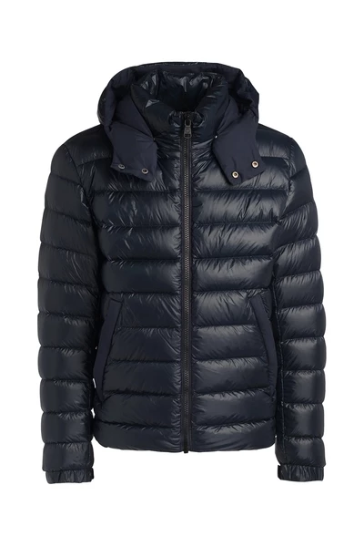 Colmar 1272 Blue Dugs blauw in gewatteerd nylon. Maxi -kap met zakken zakken zakken Cn Zip Side Logo Samenstelling: 88% polyamide 12% elastan, lichtvulling in natuurlijke veer: 90% eendenveren, 10% eendenveer