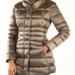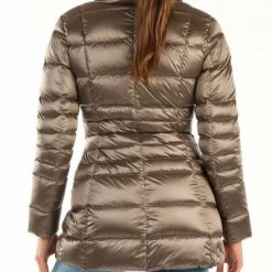 Gevoerde nylon stof en maxi nek lange mouw met tweewegen ritssluiting en tirazip -logo sluiting met passagiersdrukknoppen met voorzakken met zip patch -logo op het mouwmodelvormige vulling: echte veer veerhoogte van het model (cm): 175 size veren versleten size versleten. : 40 Samenstelling: 100%polyamide