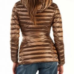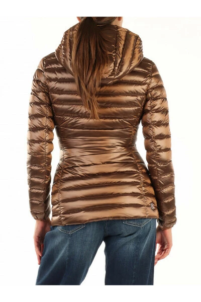 Gevoerde nylon stof en gewatteerde kraag met hoge capuchon Niet verwijderbare lange mouwen met elastische polsen met tweewegende ritssluiting voor de voorzakken met zip -patch -logo op het logo van de mouwpatch op de achtervormige modelvulling: echte veermodelhoogte van het model (cm): 175 veren grootte: 40 Samenstelling: 100%polyamide