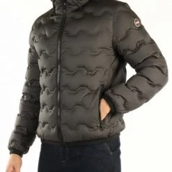 Kraag met hoge capuchon die niet verwijderbaar is met lange mouwen met elastische pins sluiting met zip- en tirazip -logo voorzakken met zip -patchlogo op het patch -logo van de mouw op de rugvulling: echte veerhoogte van het model (cm): 185 veren grootte: 48 Samenstelling: 100% Polyester