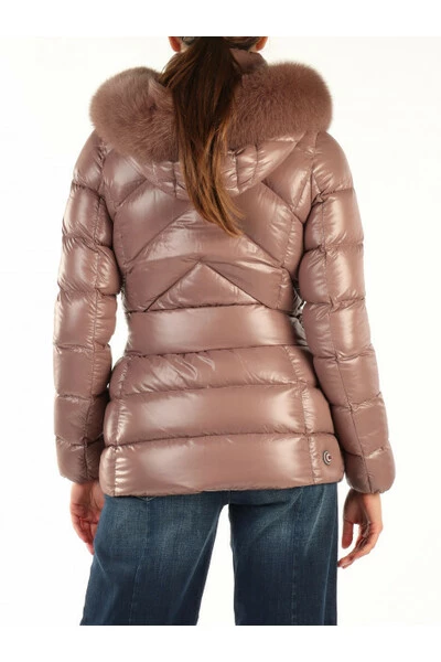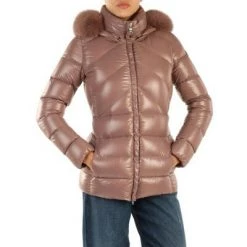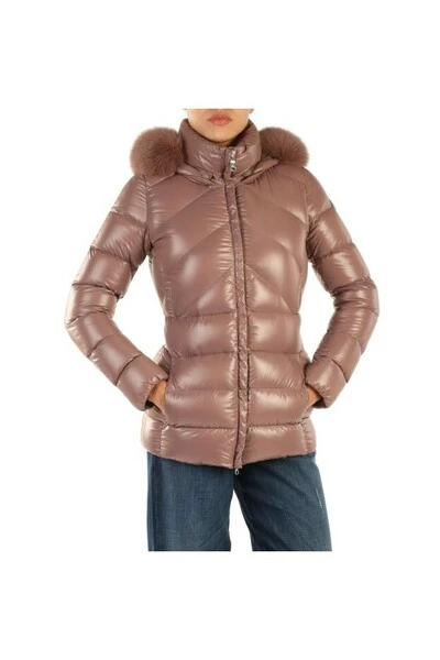 Gevoerde nylon stof en gewatteerde high cooded kraag afneembare kap in verwijderbare vacht lange mouwen met elastische manchetten met tweewegende ritssluiting en tiraziplefers voorzakken met ritssluitingslogo op het logo van de mouwpatch op de achterkussen: echte verenhoogte van het model ( cm): 175 grootte grootte: 40 Samenstelling: 100%polyamide
