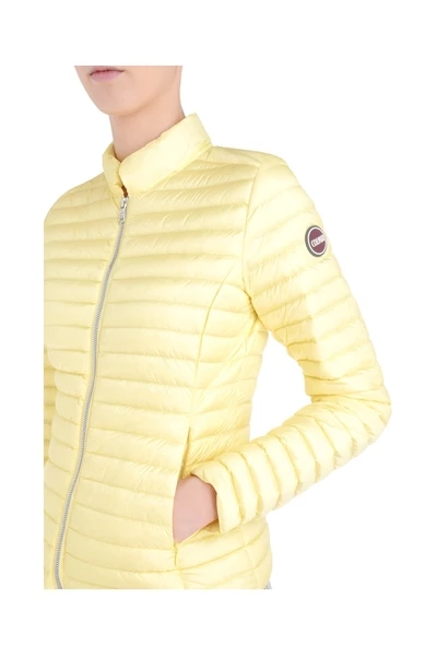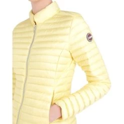 Colmar Slim Down Jacket in geel waterafstotende lichte stof. Zijlogo buitenste schaal: 100% polyester voering: 100% polystervulling: 90% eend omlaag, 10% eendenveer