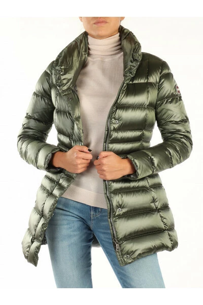 Gevoerde nylon stof en maxi nek lange mouw met tweewegen ritssluiting en tirazip -logo sluiting met passagiersdrukknoppen met voorzakken met zip patch -logo op het mouwmodelvormige vulling: echte veer veerhoogte van het model (cm): 175 size veren veren size versleten. : 40 Samenstelling: 100%polyamide