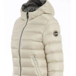 Dames donsjack met capuchon van Colmar. Gemaakt van waterafstotende stof en gevoerd met eendendons. Een ideaal model voor de winter. Voorzien van logo op de linkermouw en elastische onderkant en manchetten. Comfortabele ritssluiting en zakken met ritssluiting.