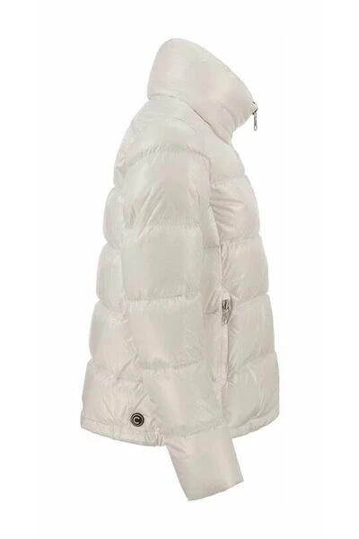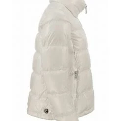 Vrouwen ; s jas gemaakt van super glanzende stof en opgevuld met natuurlijke down. Een elegant jasje met hoge nek met geribbelde gebreide manchetten en een trekkoord bij de zoom om de breedte aan te passen. Dankzij de gelakte afwerking van de stof is dit een vrouwelijk donsjasje dat niet kan ontbreken in je wintergarderobe.- Zip bevestiging