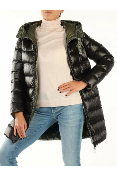 Gevoerde nylon stof en niet -ontstelbare nek met hoge capuchon gewatteerd met sluiting met lange mouwen met tweewegende ritssluiting voor de voorzakken met zip -patch -logo op het loze van de mouwpatch op het omkeerbare rugkussen: echte veerhoogte van het model (cm): 175 size veren veren. : 40 Samenstelling: 100%polyamide