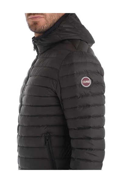 Colmar Hooded Down Jacket in zwart waterafstotende stof. Lichtgewicht natuurlijke veervulling: 90% eend omlaag, 10% Duck Feather Samenstelling: 100% polyester