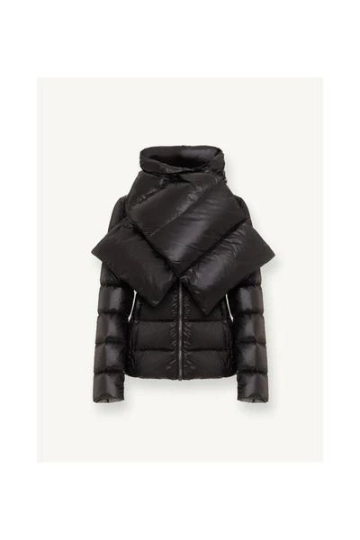 Damesjack gemaakt van waterafstotende stof, gerecycled en gemengd met een zwart geverfd garen dat een iriserend effect geeft op donkere tinten. Natuurlijke donsvulling. De eigenaardigheid van de verwijderbare gewatteerde sjaal geeft een vleugje zwier aan een klassiek en onmisbaar kledingstuk om het winterseizoen het hoofd te bieden. Materiaal: Buitenkant: 100% Polyamide Voering: 100% Polyamide Vulling: 90% Eendendons, 10% Eendenveren Productstijl-ID: 2268-5WG-IN21-99 Deze beschrijving is automatisch vertaald.