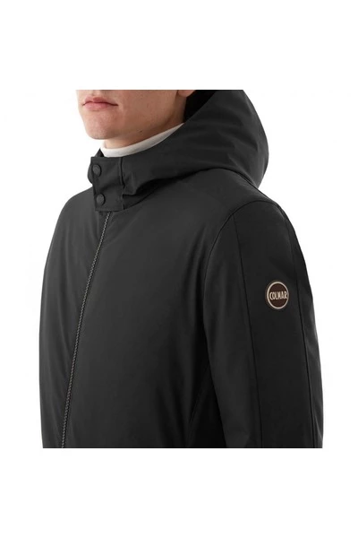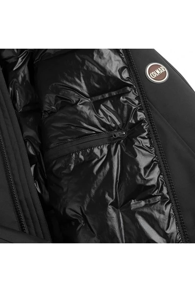 Herenjack met vaste capuchon, gemaakt van stretch en gelamineerde technische stof met waterdicht en waterafstotend polyurethaan membraan. Gewatteerd met natuurlijk dons, gebruik makend van een nylon stof met een bijzondere constructie die geen naden nodig heeft, is dit het perfecte winterkledingstuk voor wie op zoek is naar een niet-gewatteerd donsjack, maar met de stijl en het raffinement van Colmar Originals. Ritssluiting Zijzakken en binnenzak met rits Vaste capuchon Elastische band aan de manchetten Natuurlijke verenvulling Waterafstotende en waterdichte behandeling Colmar Originals logo aangebracht op de linkermouw
