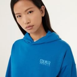 Vrouwen s sweatshirt gemaakt van katoenen blend in elkaar glooiende stof. Een beetje lang om de heupen te bedekken, heeft dit model met een vaste kap en zij ventilatieopeningen een uitgesproken sportieve look. De zachtheid van de basisstof en de comfortabele pasvorm maken het functioneel en praktisch. Het discrete Colmar Originals -logo op de linker borst onderstreept de minimale stijl. Vaste kapopeningen aan de onderste elastische geribbelde bodem en manchetten kunnen worden gecombineerd met fleece broek Mod. 9074 4VW gt; / li & gt; Comfort Fit Colmar Originals Logo toegepast op de linkerkast