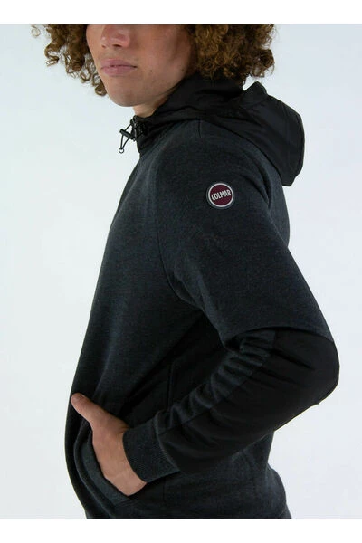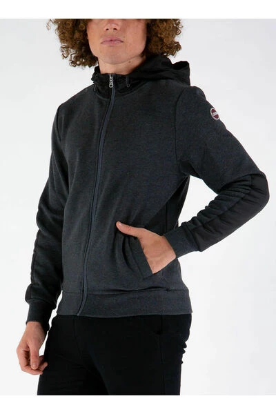 Een heren sweatshirt gemaakt door Colmar om je te beschermen tegen de kou van de herfst en de wintermaanden. Gemaakt van zacht gemengd katoenen fleece met fleece-interieur. De capuchon met een vloeiende stoffenkraag is, opgevuld binnen en is, instelbaar met een elastische riem. Centrale ritsopening en twee zakken openen voor uw handen. Patch op de capoördineerde mouwen van de kap. Merk: Colmar Model: weatshirt met capuchon en zip; Artikelcode: 8213 Samenstelling: 60% katoen, 40% polyester. Hood: 100% polyester. Fit: het model is 186 cm hoog en draagt maat M.
