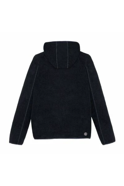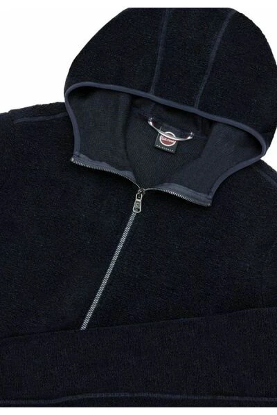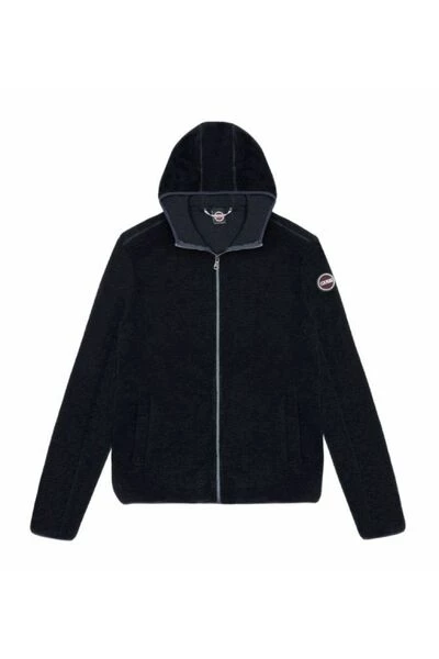 Colmar Originals Navy-Chocolate Jerseys Hot Jacket met kap en volledig operabele Zip Mixed Wol Maagd en polyesterwol die de esthetiek van breien combineert met de sportiviteit en bruikbaarheid van een veelzijdig kledingstuk. De randen van de kap, polsen en onderkant zijn afgewerkt met een elastische toon aan de basisstof.