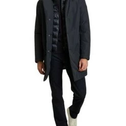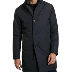 Waterafstotende jas gemaakt van polyester in marineblauw. Midden-lengte sneden, het heeft lange mouwen, een klassieke kraag en een voorste placket met drie knoppen. Aarzel niet om deze mooie waterafstotende jas van Colmar aan te nemen. Ideaal voor lange winterdagen, deze jas beschermt je tegen slecht weer terwijl je je warm houdt.
