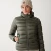 Dubbele borstjack in nylon. Gevolde in eendenveer.