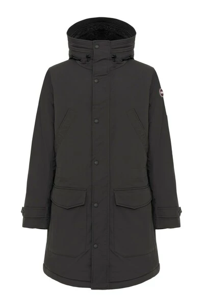 Medium lenght Men s jas met onaantakelijke kap gemaakt door diagonaal mat comfort polyester stof, met waterafstotende behandeling. Inner wordt gemaakt door warme toon-op-tone synthetische vacht. Opgevuld met zachte wadding en met een regelmatige pasvorm. Comfortabele en praktische borstzakken en zijkerszakken. Sluiting met knoppen en kikker bij de manchetten. Met bodem met bodem kunt u de breedte aanpassen. Colmar -patch op linker mouw en