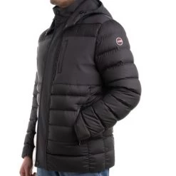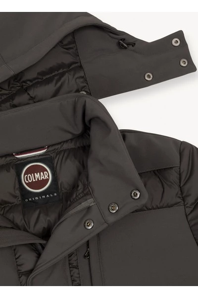 Men s jas met afneembare kap, gemaakt van ondoorzichtige perzik-handstof met stretchstofinzetstukken. Opgevuld met natuurlijke down. De technische technische melanges van de String-Effect Stretch Fabric met de elegantie van ondoorzichtige perzik-hand polyester. Een uitgebalanceerde mix van materialen, wijselijk gedoseerd door de knowhow van Colmar Originals. Zip en perszakken zakken zakken, borst- en binnenzak van de zip zak afneembare motorkap met persstuds verstelbare trekstring op motorkap natuurlijke veren vulling wateraflatende behandeling colmar originelen logo aangebracht op de linkermouw