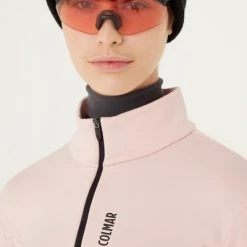 Women s thermisch shirt met half ritssluiting gemaakt van glad stretch fleece aan de buitenkant en aan de binnenkant geborsteld. Geometrische sneden besloot dat het silhouet wordt verbeterd zonder harmonie op te offeren. Comfort en bruikbaarheid voor een technisch kledingstuk gewijd aan vrouwelijke skiërs die tijdens de sport geen snufje vrouwelijkheid opgeven. Ritssluiting. Interne zweetband. Normale pasvorm. Colmar -logo op de linkerborst