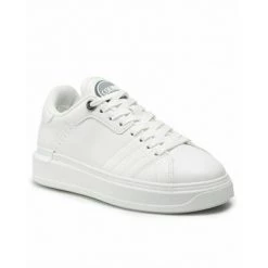 Damesschoenen Sneaker Colmar Clayton Bleach -model. Gemaakt van witte eco -leer. Witte veters. Witte rubberen bodem. Interieur leed in stof. Verwijderbare fusbet bedekt met traagschuimweefsel. Normale pasvorm. Hiel 3,0 cm. Plateau 2,3 cm. Origineel product