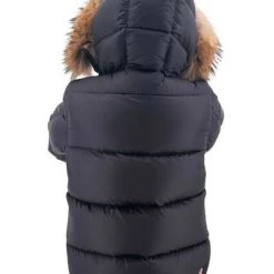Junk naar beneden in vrijstaande vacht gewatteerd met logo op de schouder en hoofd taillezakken bij voorkeur bruikbaar in de winter gemaakt in China Samenstelling 93% Duck Feathers 7% Feather – 100% bont
