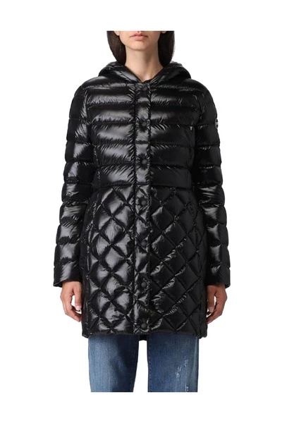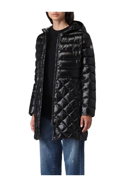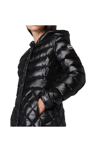 Women van gemiddelde lengte s jas met een vaste kap met lichte natuurlijke omlaag en gemaakt van waterafstotende gerecycled stof, met een zachte aanraking. Vrouwelijke jas met regelmatig quilten op de buste en mouwen, die van vorm veranderen aan de onderkant rhombussen worden. De afwisseling van verschillende patronen, het iriserende effect van de basisstof en de lichte zijpartij aan de zijkanten, geeft leven aan een moderne winterdonsjas. Sluiting met zip en drukknoppen zijzakken met zip vaste kap verstelbare trekstring op kap lichtgewicht natuurlijke veervadervulling gerecycled stof water Weerbare behandeling Colmar Originals Logo toegepast op de linkerklep