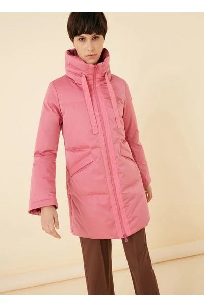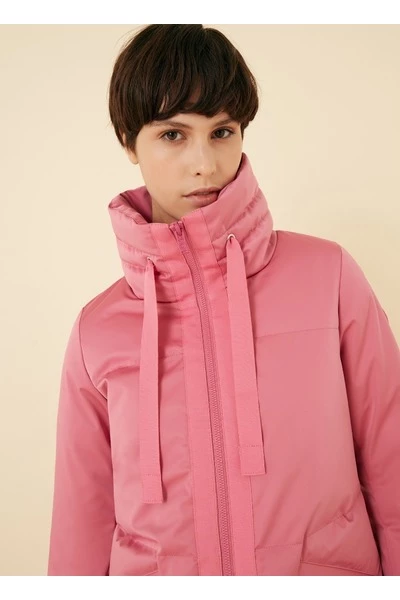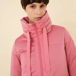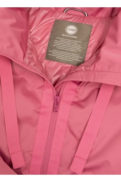 Eenvoudige en elegante vrouwenjas gemaakt van gedeeltelijk gerecyclede drielaagse satijneffectstof met waterafstotende behandeling. Minimaal ontwerp met stijlvolle accenten, zoals de kraag verfraaid met de Grosgrain-trekkoord, die ook de centrale opening benadrukt, de Snap-knoppen aan de zijkanten waarmee u de onderkant en de enigszins klokvormige mouw kunt verbreden. Elegantie en technische details. Eco-vriendelijke Zip Sluiting Zijzakken Verstelbare trekstring op de kraag snapknoppen aan de zijkanten gerecyclede wadding vulling gedeeltelijk gerecycled stof water Werende behandeling gerecycled essentiële interne label Colmar Originals Logo toegepast op de linkerkleef