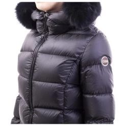 Colmar Originals Coats Black Colmar Originals Down Jacket: niet -afneembare kap vooraan Zip Bevestiging Twee zijzakken Zip Fur Trim Side Logo Patch