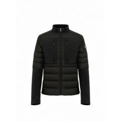 Herenjack gemaakt van ondoorzichtige stof met de hand vissen met steekstoffen inzetstukken. Gevoerde in natuurlijke veer, neopreen -inserts