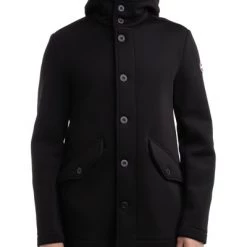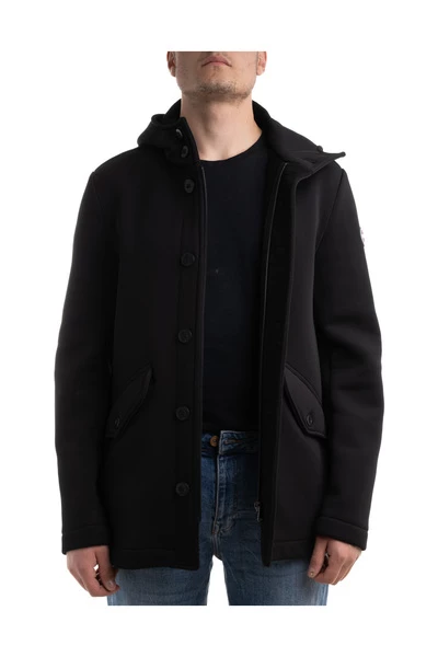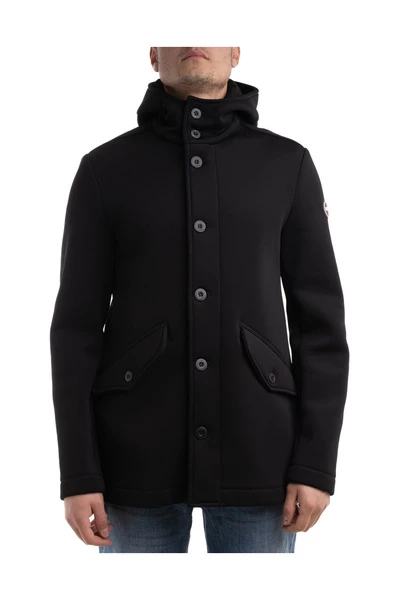 Colmar originele dikke hoodie jas voor mannen in stretch gebreide stof van acryl- en wolmengsel, normale pasvorm, met vaste kap, zichtbare centrale knooppunten, voorste laszakken met flap en knop, klein rubberen logo -patch op de lange mouw en aan de achterkant