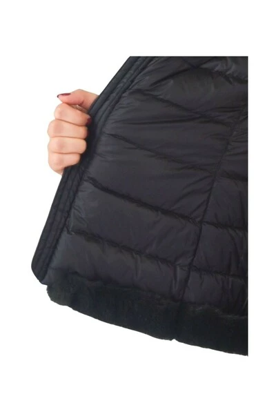 Fullzip Down Jacket Tall Neck met centraal deel in Eco -Leer. Siliconenlogo op de linkerarm. Voorzakken met hoofddrukknoppen bij voorkeur bruikbaar in de winter gemaakt in CN -stofsamenstelling 1: 100%polyamidica voering: 100%polyamidische vulling: 90%eendenbos + 10%eend bont veer 1: 100%polyester