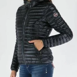 Colmar Down Jacket met damesvulling en Feather D eend. Gewatteerd model met volledige ritsopening en gecoördineerde ritszakken, kap en hoge kraag. De elastische manchetten zorgen voor dekking. Stof met water -aflossende afwerking. Colmar Originals -logo toegepast op de linkermouw. Merk: Colmar Model: